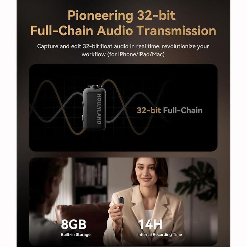 Flujo de trabajo de estudio inalámbrico de 32 bits de grado profesional: el primer sistema de micrófono inalámbrico con transmisión de audio de 32 bits de cadena completa: Captura, edita y sincroniza sonido con calidad de estudio en tiempo real en iPhones, Mac y DAW. Diseñado para flujos de trabajo exigentes con 8 GB de almacenamiento (copia de seguridad de 10H de 32 bits), sincronización de código de tiempo Frame-Perfect y modos duales (transmisor/independiente). Perfecto para sets de películas, transmisiones en vivo y producción de campo, lo que garantiza una fiabilidad irrompible para los usuarios de micrófonos inalámbricos.