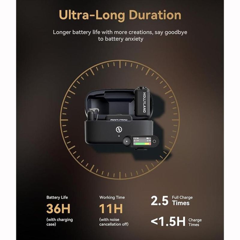 Duración extendida de 36 horas, crea en cualquier momento: di adiós a la ansiedad de la batería, el micrófono inalámbrico LARK MAX 2 tiene una larga duración de la batería que garantiza que puedas crear más, lo que te permite crear en cualquier momento y en cualquier lugar.