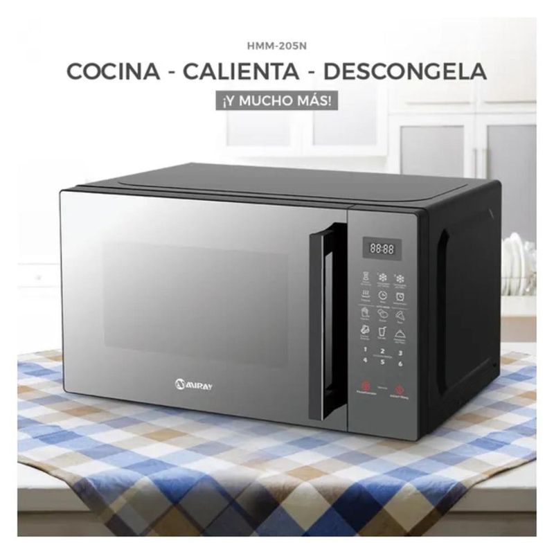El Horno Microondas HMM-205N 20 L combina eficiencia, diseño y funcionalidad para facilitar tu vida diaria en la cocina. Con una capacidad de 20 litros y una potencia de 700 W, este microondas es ideal para calentar, cocinar y descongelar tus alimentos de manera rápida y segura. Su diseño moderno con acabado espejado y panel digital intuitivo se adapta perfectamente a cualquier espacio, brindando un toque de elegancia y tecnología a tu hogar.