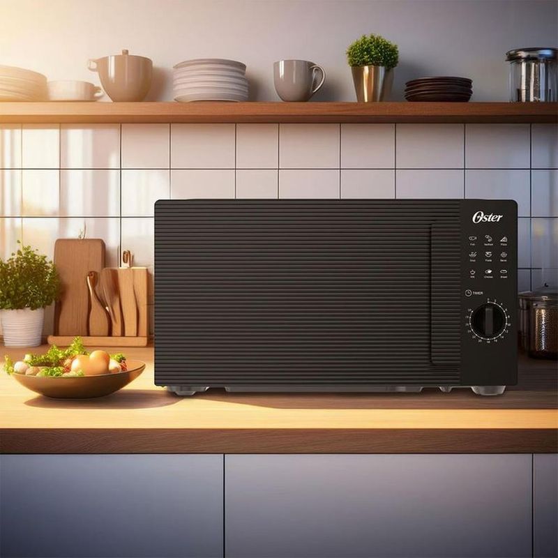 Dale a tu cocina un toque moderno y práctico con el microondas Oster POGW1702 de 17 litros. Su diseño compacto y elegante en color negro se adapta a cualquier espacio, mientras que su temporizador mecánico te permite calentar tus alimentos de forma sencilla y precisa. ¡Prepara tus comidas favoritas en minutos con este microondas fácil de usar y limpiar!