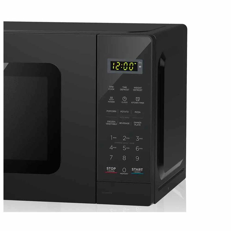 Su panel digital con pantalla LED te permite seleccionar entre múltiples niveles de potencia y programas automáticos para diferentes tipos de comida. Además, cuenta con plato giratorio de vidrio templado que asegura una cocción uniforme y un diseño intuitivo que facilita su uso en el hogar.*Reloj digital.
