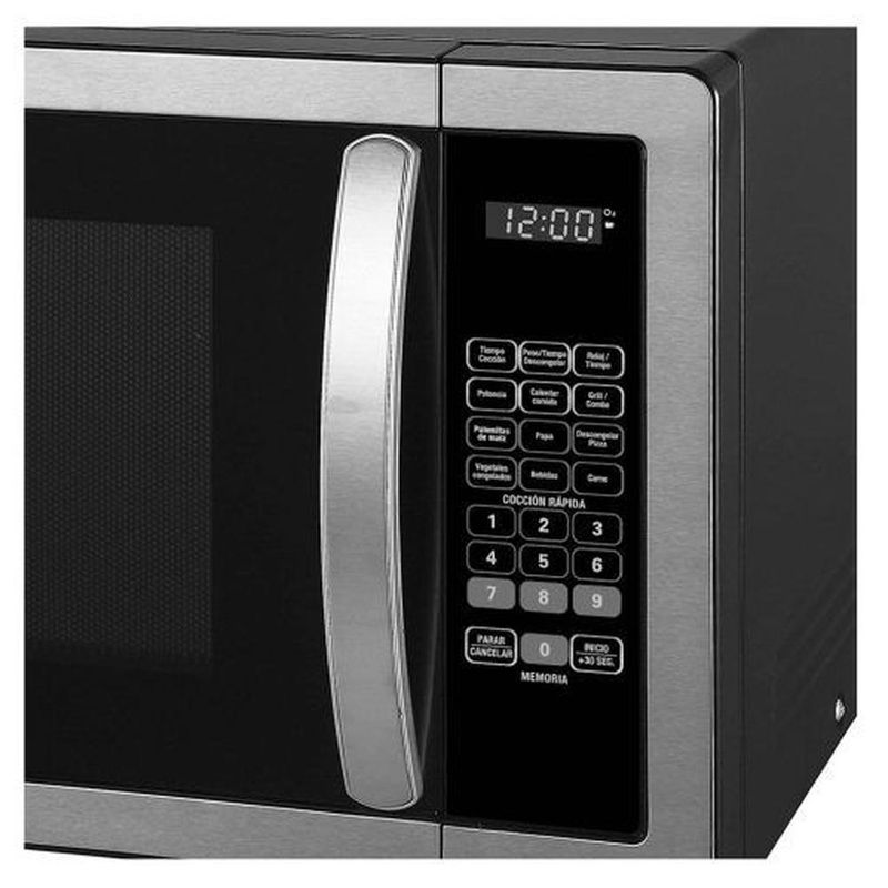 El diseño robusto del microondas incluye acero laminado en frío y una puerta de acero inoxidable, proporcionando durabilidad y un aspecto elegante que complementa cualquier decoración de cocina. La apertura de la puerta con agarradera de acero inoxidable añade un toque de sofisticación y facilita el acceso al interior del horno.