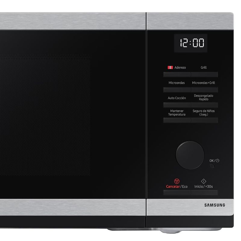 Disfruta de la versatilidad y la comodidad de un horno microondas Samsung de 23 litros con un elegante diseño en acero inoxidable negro. Este modelo incorpora una función innovadora, la Freír a la Plancha, que te permite cocinar alimentos como pollo fresco o filetes de pescado con una textura crujiente, sin necesidad de utilizar aceite. Además, con la función descongelamiento rápido puedes descongelar alimentos como carne, aves, pescado, verduras o pan de manera eficiente, seleccionando el tipo y peso del alimento, lo que optimiza el tiempo de preparación manteniendo los nutrientes intactos.