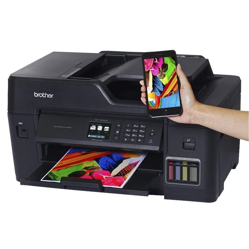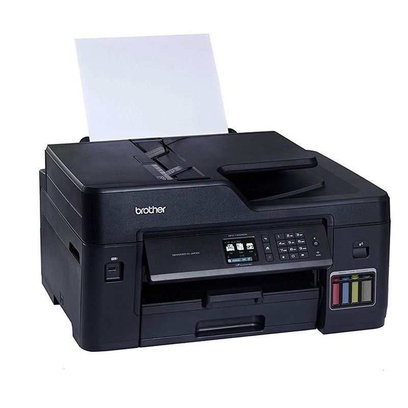 El multifuncional de inyeccion de tinta a color MFC-T4500DW Brother ofrece resultados de alta calidad a bajo precio y la ventaja adicional de poder imprimir en papel de hasta 11″x 17″ (A3). Diseñado para pymes, este potente equipo viene con una pantalla a color LCD de 2,7″ que permite navegar fácilmente por el menu e imprimir desde y escanear hacia varias aplicaciones populares en la nube. Impresion y escaneado mediante dispositivos móviles para usuarios que se mantienen lejos del escritorio. La bandeja de hasta 250 hojas admite papel de hasta 11″ x 17″ y la bandeja multiproposito de 100 hojas es ideal para varios tamaños de papel. Las funciones N-en-1 y Copiado de documentos de identida..d ayudan a ahorrar papel y a reducir gastos de impresion.