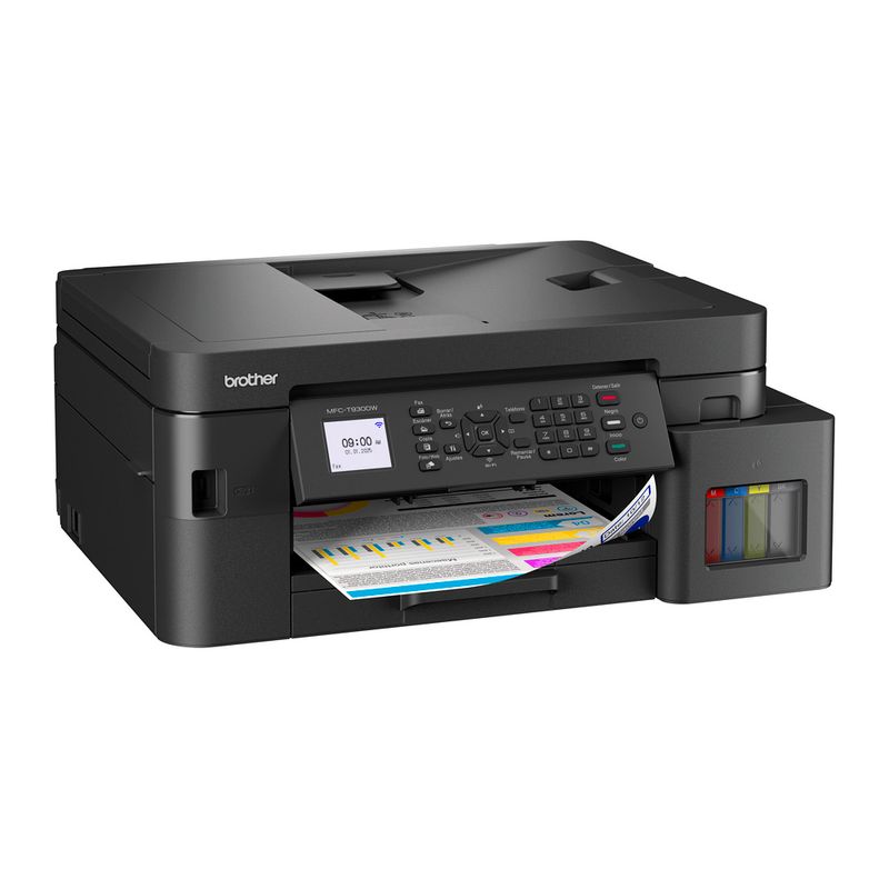La impresora multifuncional Brother MFC-T930DW está pensada para quienes buscan economía y productividad. Con su sistema de tanque de tinta integrado, permite imprimir hasta 15.000 páginas en negro o 5.000 páginas a color con cada set de botellas originales. Ofrece impresión dúplex automática, conexión Wi-Fi, Ethernet y USB, además de una bandeja de alimentación automática (ADF) para agilizar el escaneo y copiado de múltiples páginas. Su pantalla LCD facilita la configuración y el control de funciones.