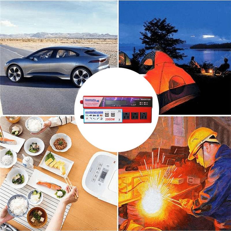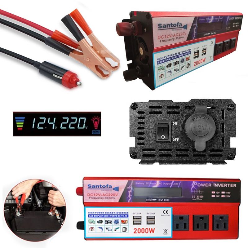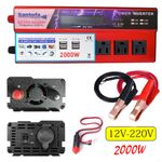 1 x Inversor de Corriente 12v a 220v 2000w pantalla LCD 4 USB 3 Sockets