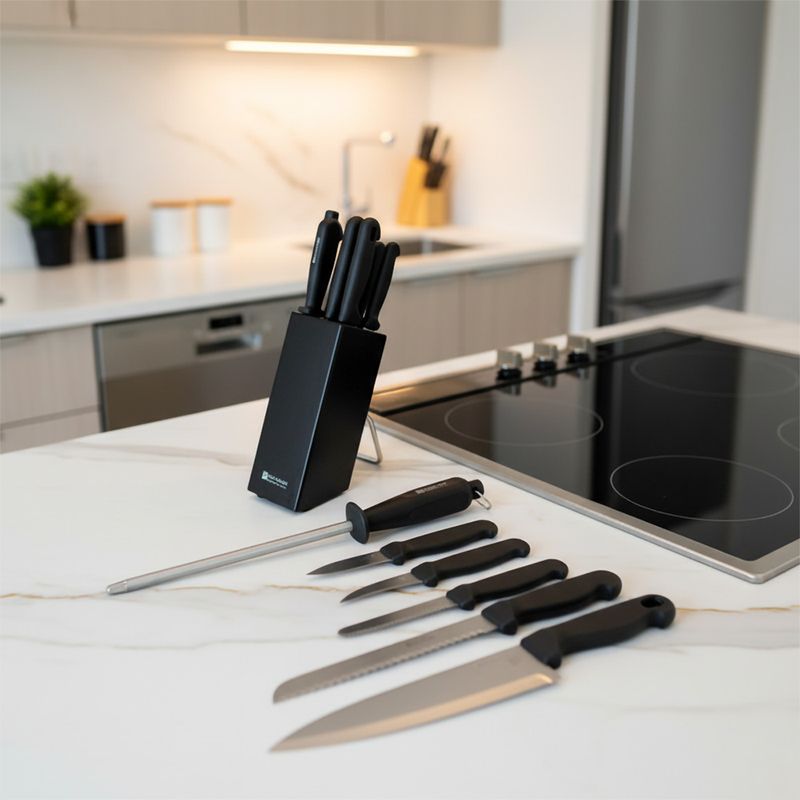 ¡Deja de lidiar con cuchillos sin filo y desorganizados! Con este set de Facusa, tendrás un cuchillo para cada tarea, perfectamente afilado y siempre a la mano.