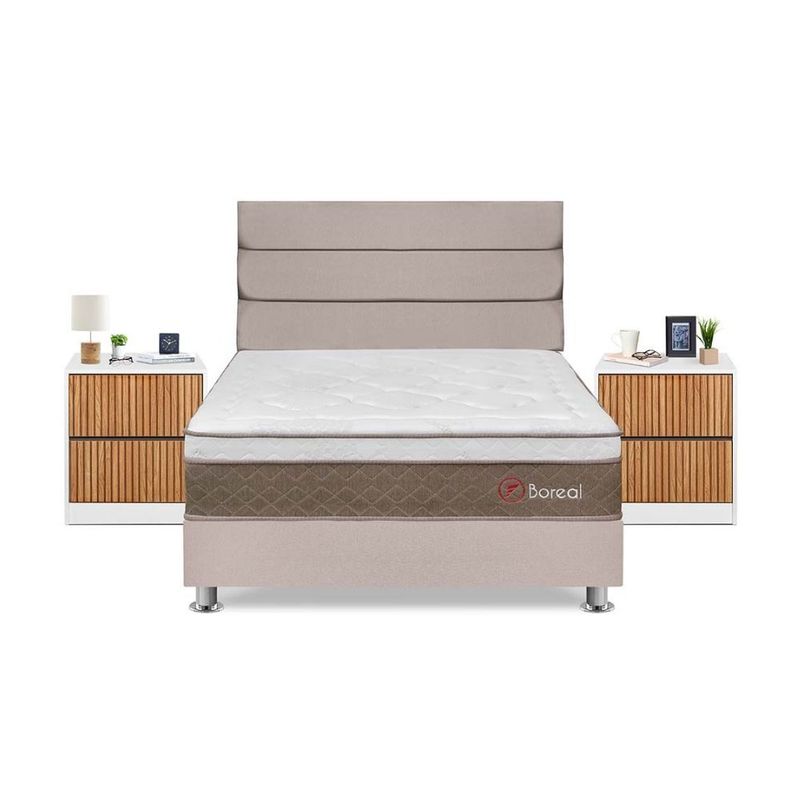 Juego de Dormitorio Forli Boreal Queen Beige + Velador Roma