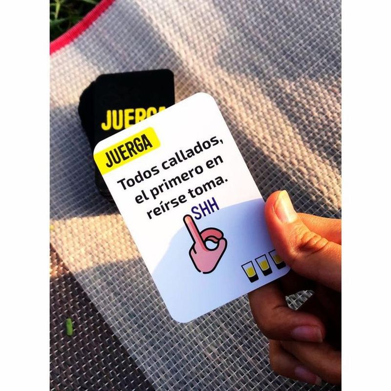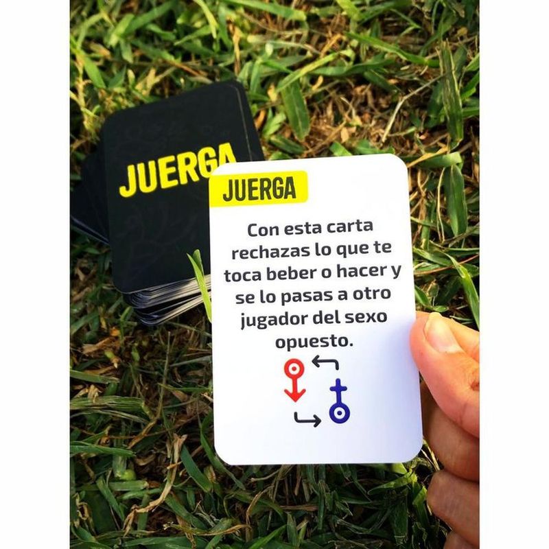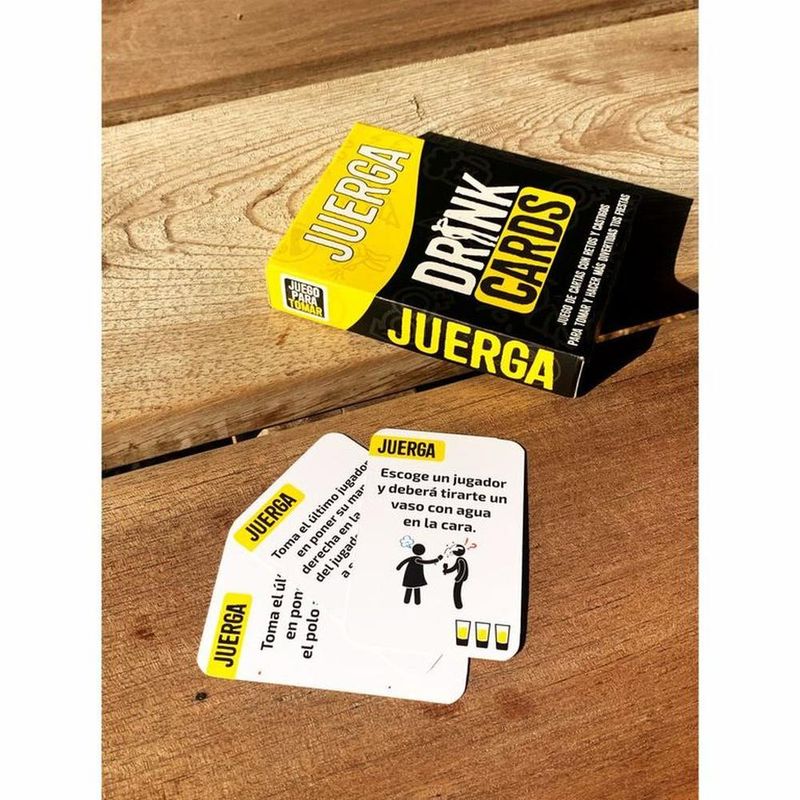 Juerga es un juego de cartas con retos, castigos y dinámicas para tomar entre amigos, ideal para tus fiestas y reuniones, descubre el lado más divertido de tus amigos con nuestra colección de Drink Cards. Prepárate para competir, fastidiar y exponer a tus amigos, mientras bebes. Las reglas son simples, sigue las instrucciones de cada carta y cumple el reto.