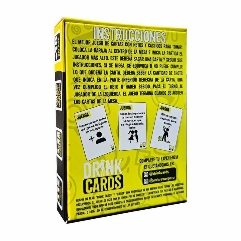 Juego para tomar en fiestas y divertirte con tus amigos. Contiene 112 cartas plastificadas y puedes jugar con hasta 20 amigos.
