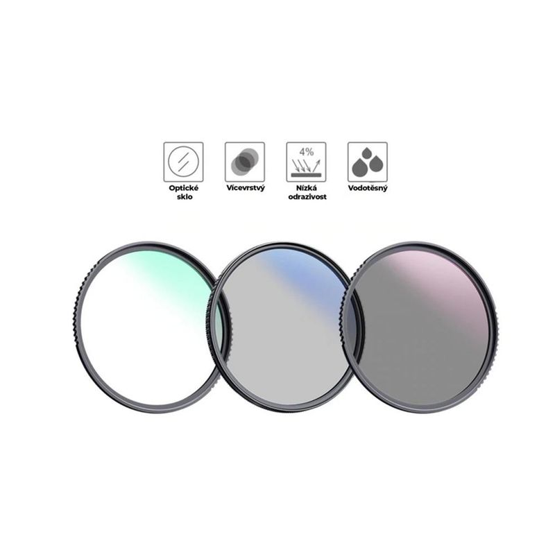 El kit de filtros de lentes de fotografía profesional de vidrio óptico K&F Concept incluye filtro UV + filtro polarizador CPL + filtro de densidad neutra (ND4) + bolsa de filtro + paño de limpieza de lentes.