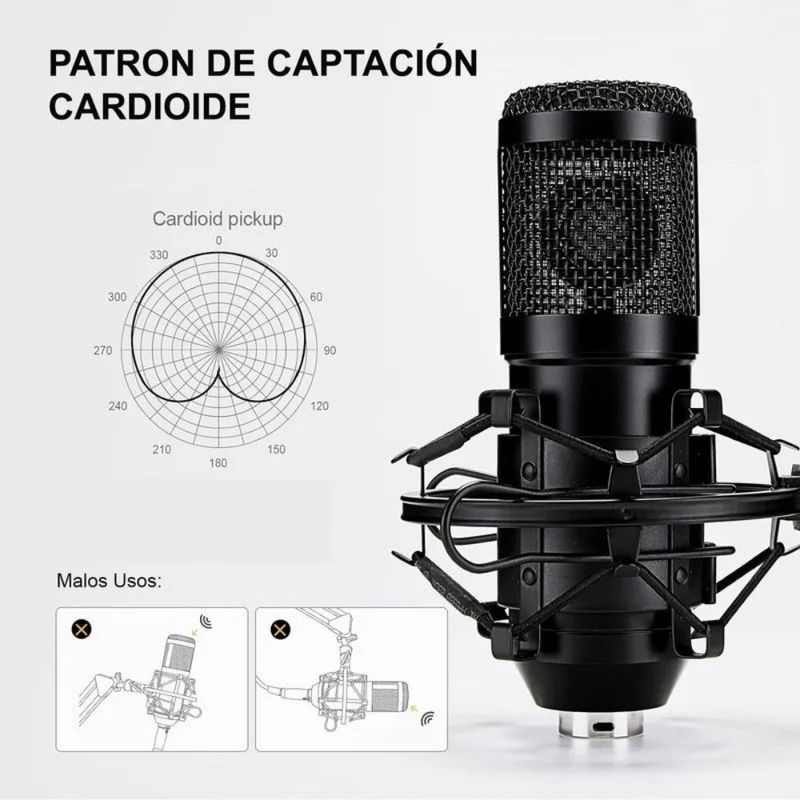 El Kit de Micrófono Condensador BM800TZ Profesional USB está diseñado para streaming, podcasting, grabaciones caseras y creación de contenido digital. Ofrece una excelente calidad de sonido gracias a su patrón polar cardioide, que capta la voz con precisión y reduce el ruido del entorno. Se conecta fácilmente mediante puerto USB, sin necesidad de equipos adicionales, brindando un uso práctico y eficiente. Incluye todos los accesorios necesarios para una instalación completa: brazo articulado, soporte antivibración, filtro anti-pop, espuma antiviento y cable USB. Ideal para creadores de contenido, locutores y músicos que buscan un micrófono versátil y de buena calidad para su espacio de trabajo o estudio en casa.