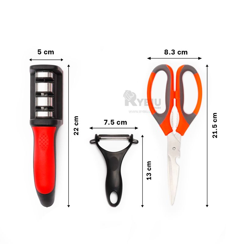 Descubre la revolución en la cocina con nuestro set de tijeras multifunción. Este set incluye tres tijeras de alta calidad, un afilador y un pelador, todo en un diseño compacto y elegante que no ocupará mucho espacio en tu cocina. Ideal para cocinas de cualquier tamaño, este set es perfecto para tus tareas diarias. Las tijeras ofrecen versatilidad: una para cortar hierbas frescas con precisión, otra con una hoja dentada para cortar carne y pollo sin esfuerzo, y una tercera equipada con una función de apertura de botellas y tapones, convirtiéndola en la herramienta perfecta para tus fiestas. Agrega eficiencia y estilo a tu cocina con este increíble set multifuncional. Observaciones adicionales: las fotografías y descripción del producto son referenciales. Producto sujeto a stock de colores. Garantía: 7 días por daños de fábrica. El Modelo de los(el) regalo(s) está sujeto a disponibilidad de stock y colores.