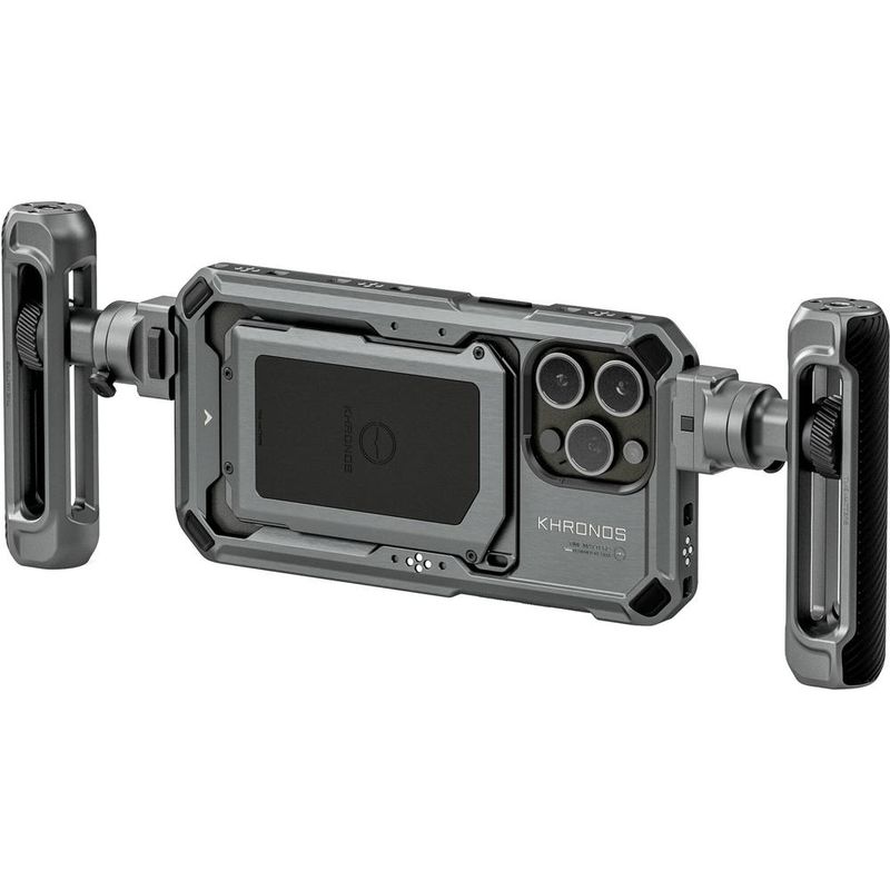 El Kit Ligero Tilta Khronos para iPhone 15 Pro Max (Gris Espacial) está diseñado específicamente para la filmación móvil, ofreciendo una solución completa para cineastas en movimiento. Este kit incluye una funda Khronos para el iPhone 15 Pro Max, que proporciona una protección robusta gracias a su diseño de cierre de 4 tornillos, asegurando que tu dispositivo esté a salvo durante el uso. El kit también cuenta con un mango ajustable Khronos, que permite una altura ajustable y una rotación de 180°, facilitando la captura de ángulos creativos y cómodos. Además, la estructura incluye un sistema de puntos de contacto electrónico que proporciona energía a los accesorios compatibles, lo que amplía las posibilidades de grabación.Con un diseño que incorpora una abrazadera de bloqueo y 9 puntos de montaje, el Kit Ligero Tilta Khronos es versátil y se integra perfectamente con el ecosistema de accesorios Khronos. También presenta roscas de 1/4"-20 en la parte superior e inferior, permitiendo la conexión de diversos equipos adicionales. El agarre de silicona cómodo asegura que puedas manejar tu equipo con facilidad y seguridad, haciendo de este kit una herramienta indispensable para cualquier cineasta móvil.