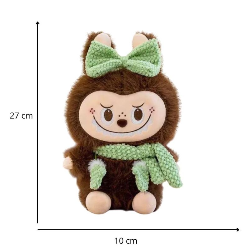 Este personaje adorable combina todo el espíritu festivo con el inconfundible estilo de Labubu. Con su pelaje marrón suave y su atuendo navideño en tonos verdes, este osito es el compañero perfecto para celebrar la época más especial del año con ternura y originalidad.