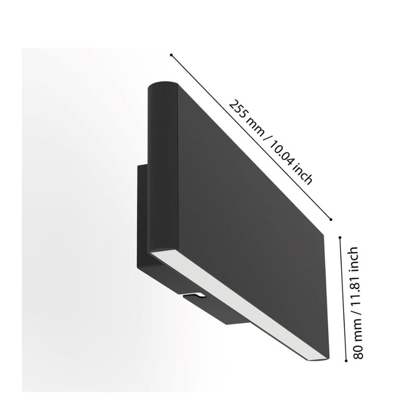 El aplique de pared LED CLIMENE está formado por un cuerpo rectangular de aluminio negro. Las superficies luminosas de plástico blanco por encima y por debajo de la lámpara proporcionan una acogedora luz indirecta hacia arriba y hacia abajo. Los LED integrados emiten una agradable luz blanca cálida. El aplique se adapta perfectamente a las tendencias de decoración minimalistas y ofrece una iluminación moderna en cualquier estancia, ya sea en la cocina, el salón, el dormitorio, el pasillo o el comedor.