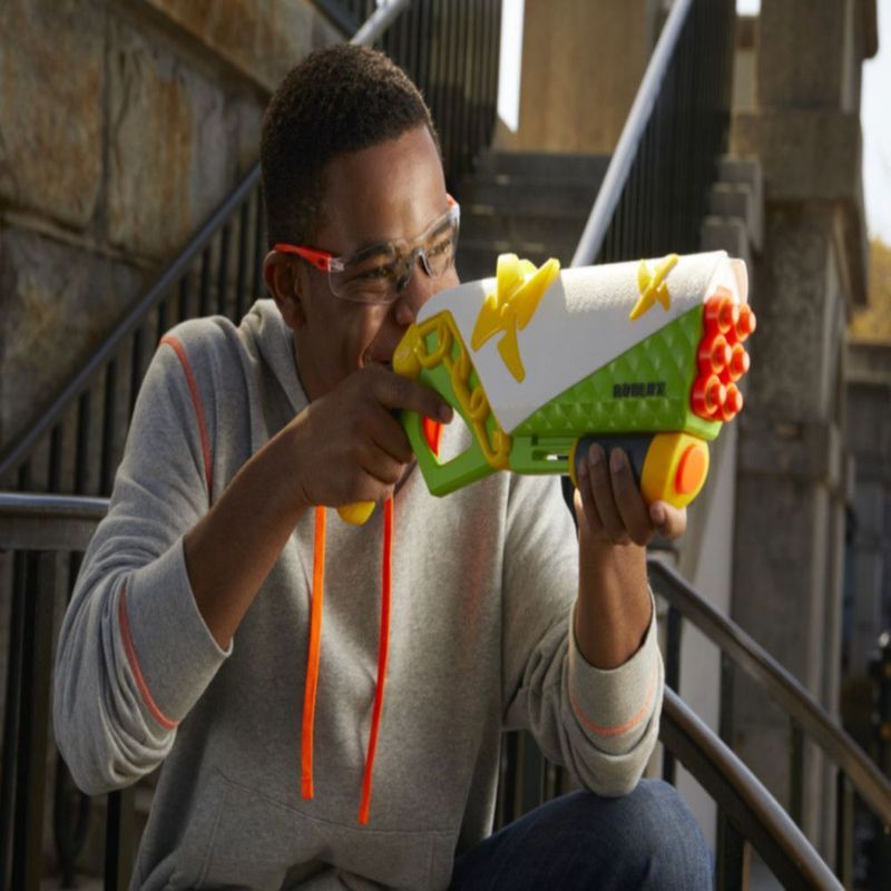 El lanzador Nerf Roblox Ninja Legends: Shadow Sensei se inspira en la experiencia de Roblox Ninja Legends de Scriptbloxian Studios. Incluye un código especial que te permite obtener un artículo virtual exclusivo en Roblox.* Enfréntate a tus oponentes con la habilidad de un ninja mientras lanzas 6 dardos seguidos. Incluye 6 dardos de espuma Nerf Elite para cargarlo completamente. Activa la mientras mueves el deslizador hacia delante y hacia atrás para preparar el lanzador y aprietas el gatillo para lanzar un dardo. Es un lanzador impresionante para los fans de Roblox y de Nerf que se lanzan a la diversión de los dardos ninja. Los dardos oficiales de Nerf han sido probados y aprobados por su rendimiento y calidad y son ideales para juegos de interior y exterior. Se recomienda el uso de lentes (no incluidos).