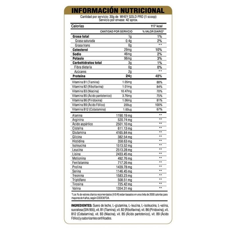 WHEY GOLD PRO es una proteína que está formada por