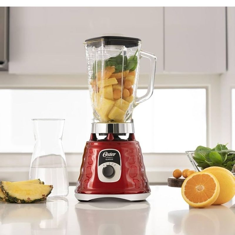 La licuadora clásica Oster BLST4126R ha sido diseñada para acompañarte en cada preparación, combinando un motor de alto rendimiento con un diseño elegante y duradero. Su potencia de hasta 1000 W permite triturar hielo, frutas y verduras con rapidez, logrando mezclas homogéneas y cremosas en segundos. Es ideal para preparar jugos naturales, batidos, salsas, sopas y todo tipo de recetas caseras con resultados profesionales. Su jarra de vidrio Boroclass® de 1.25 litros está fabricada para resistir cambios bruscos de temperatura, por lo que puedes licuar ingredientes calientes o fríos sin preocupaciones. Además, su capacidad es perfecta para preparar varias porciones al mismo tiempo, haciendo que cocinar para la familia o invitados sea mucho más práctico. Equipada con cuchillas de acero inoxidable ultra resistentes, esta licuadora garantiza un rendimiento constante y una larga vida útil. Sus 3 velocidades, controladas con una perilla ergonómica, te permiten elegir la potencia adecuada para cada preparación, desde una mezcla suave hasta una trituración intensa. El diseño clásico de Oster se complementa con una base metálica en color rojo vibrante, que no solo aporta estabilidad durante el uso, sino que también añade un toque moderno y elegante a tu cocina. La Oster BLST4126R es mucho más que una licuadora. Es un aliado confiable, potente y práctico para el uso diario, que te asegura versatilidad, resistencia y un estilo que destaca en cualquier espacio.