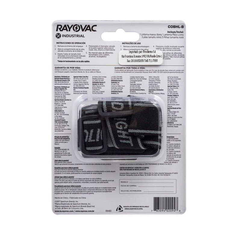Linterna manos libres COBHL-B Rayovac con pila 3AAA
