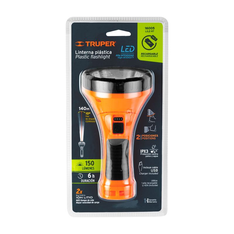 Linterna plástica 1 LED 150 lm recargable, Truper