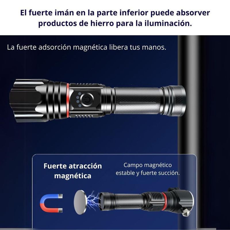 Diseñada para los más exigentes, esta linterna táctica multifunción es tu mejor aliada en situaciones de emergencia, viajes o actividades al aire libre. Su cuerpo de aleación de aluminio, herramientas integradas y potente iluminación la convierten en una herramienta indispensable.