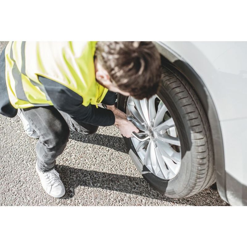Con formato en "L", la llave de rueda de Real Plaza PRO tiene un dado de un lado, para facilitar la retirada o colocación de las tuercas de la rueda y una espátula del otro lado, para manejar los neumáticos y las tazas. Quien es PRO las usa.