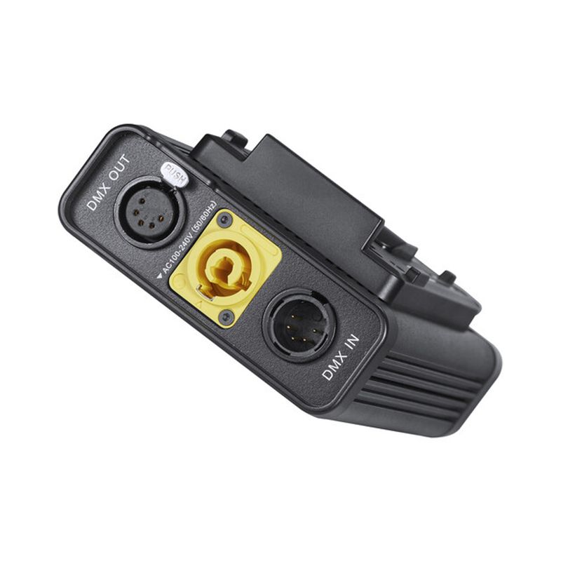 El S60 tiene una temperatura de color constante y sólida de 5600 K que se puede convertir a balance de tungsteno con un filtro de gel simple y se puede atenuar de 0 a 100 %. Si bien puede realizar estos ajustes localmente en el dispositivo, Godox ofrece varias formas de hacerlo de forma remota. El S60 se puede controlar desde una consola a través de DMX integrado, de forma inalámbrica con una aplicación de teléfono inteligente o con un control remoto opcional que tiene un alcance de 164'. El S60 está listo para su uso en todo el mundo gracias a su fuente de alimentación de 100 a 240 V, pero también puede ejecutarlo a través de la placa de batería de montaje en V de su controlador cuando la alimentación de CA no está disponible.