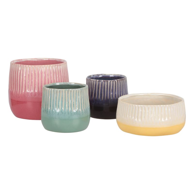 Maceta de cerámica con diseño bicolor y textura