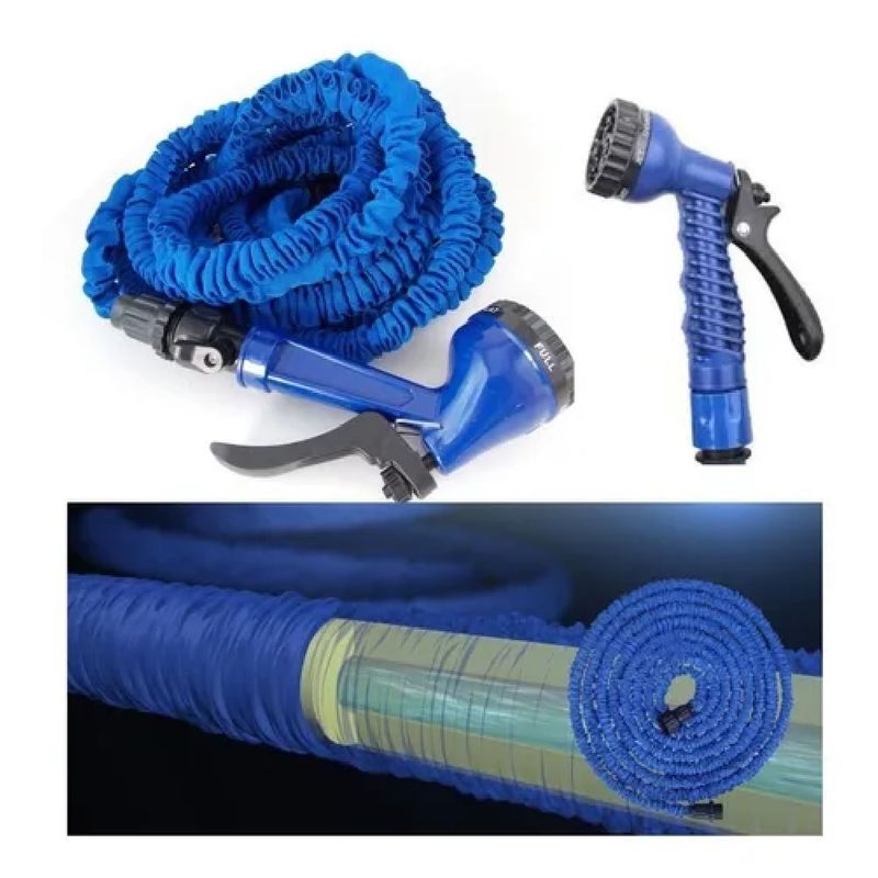 La nueva manguera de riego se expande automáticamente al abrir el grifo del agua por efecto de la presión y se va haciendo cada vez más larga hasta triplicar su tamaño. Al cerrar el agua, se contrae y se va haciendo más pequeña hasta recuperar tu tamaño inicial, reduciéndose en unos segundos.