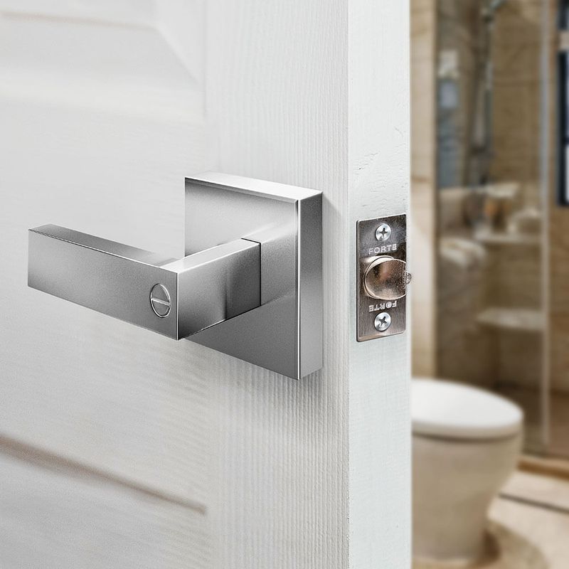 Picaporte de 12 mm. Mariposa de bloqueo interno. Ranura para apertura de emergencia. Uso en puertas interiores macizas o contraplacadas para baños o afines. Para espesores de puerta entre 35 mm y 45 mm. Backset regulable de 60 mm a 70 mm.