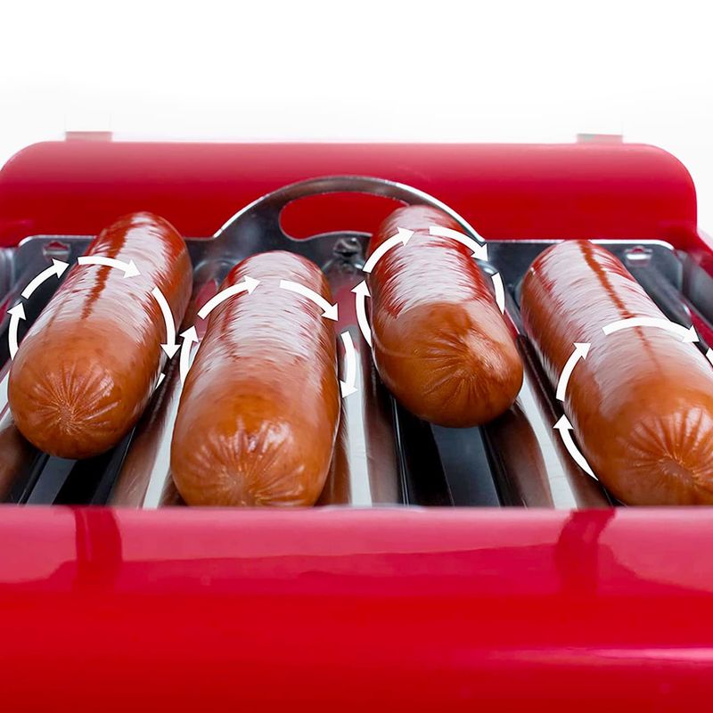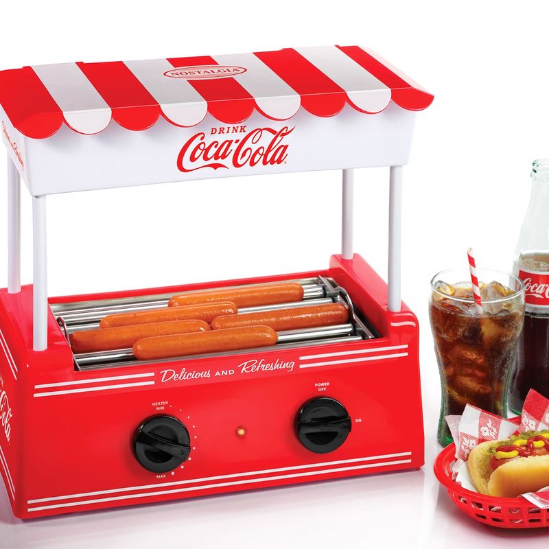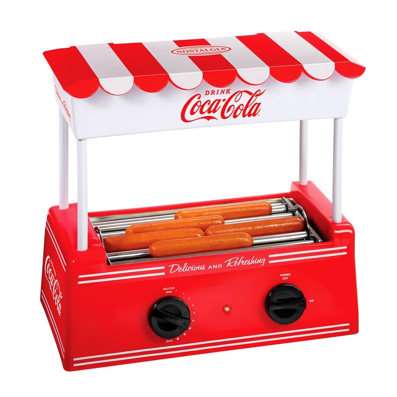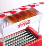 Esta máquina de rodillos para hacer Hot-Dogs de Coca-Cola cocina hasta 8 Hot-Dogs regulares o 4 Hot-Dogs largos a la vez. Además, la parte superior de la máquina se puede usar para calentar los panes para una excelente comida o snack.