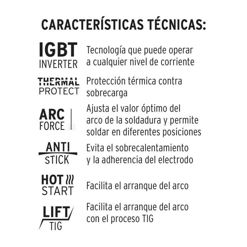 Voltaje de circuito abierto 1 FASE (80 V CD), 2 FASES (70 V CD)