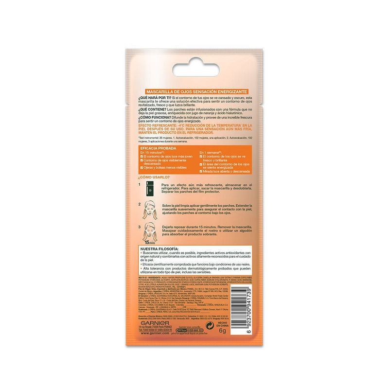 Mascarilla En Tela Hidrabomb Para Ojos Naranja Garnier Skin Active