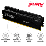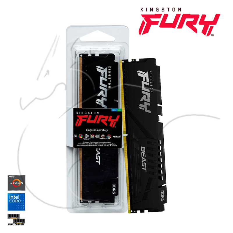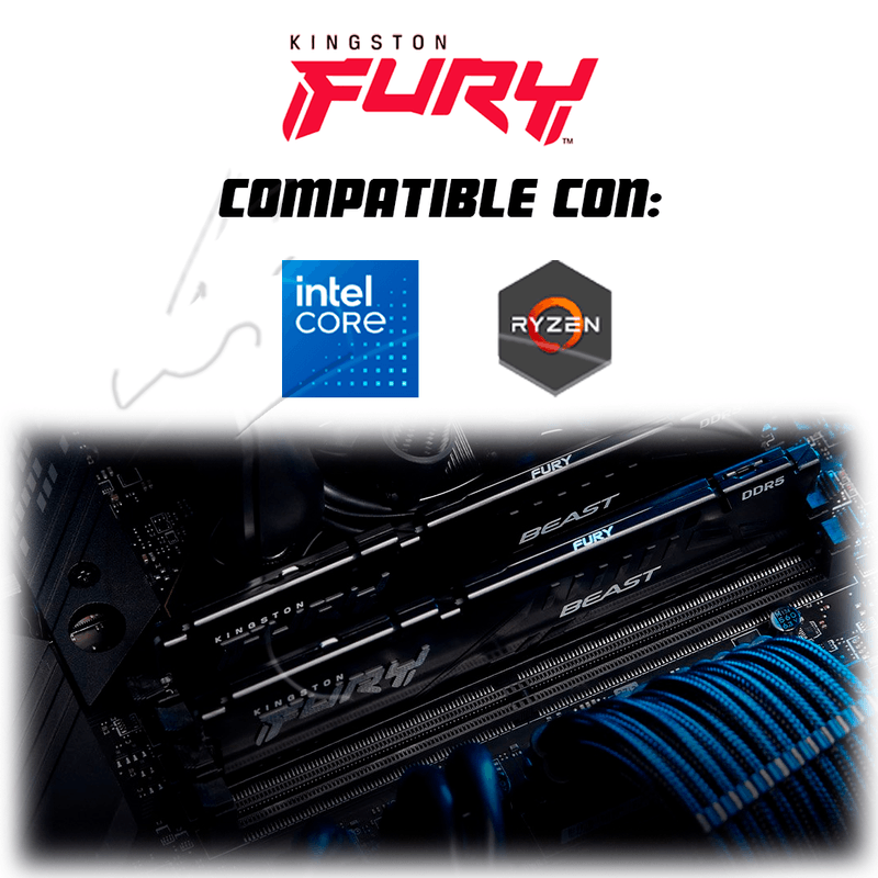 Memoria Kingston Fury Beast 8GB DDR5-5600MHz, PC5-44800, CL40, 1.25V, 288-Pin, Non-ECC