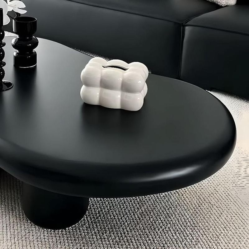 El diseño incluye patas cilíndricas robustas que aseguran estabilidad y soporte, mientras que su forma asimétrica le confiere un carácter artístico que se adapta a interiores contemporáneos o minimalistas. Esta mesa es perfecta para realzar salas de estar, oficinas o cualquier rincón donde se necesite un mueble funcional con personalidad.