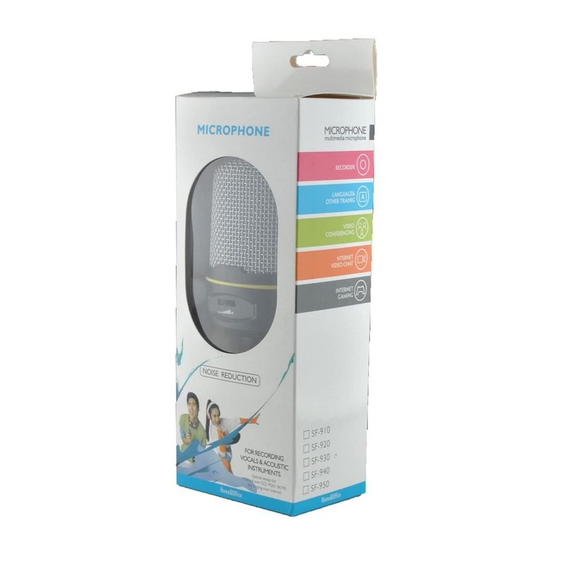 • Micrófono omnidireccional, micrófono altamente sensible, calidad de sonido clara, adecuado para chat en línea, grabación de vedio, reuniones de negocios y otras ocasiones. • Red a prueba de viento de metal, prevención de boquilla y prevención de golpes, tiene una fuerte resistencia a los golpes y al impacto. • Puerto de 0.138 in, antioxidante, adecuado para varios altavoces de 0.138 in, conexión de conector XLR, diseño enchufable. • Equipado con soporte de trípode ajustable, cómodo de transportar y rápido de instalar. • Experimenta la comodidad de insertar y usar y una calidad audional digital mejorada, sin necesidad de instalar controlador de tarjeta de sonido, compatible con computadoras de escritorio y portátiles del sistema XP/7/8/10. Especificaciones: • Producto 100% nuevo • Modelo: SF-920 • Color: Negro • Material: Aleación de zinc • Cancelación de ruido • Dirección: Omnidireccional • Convenientemente fijado con la ayuda del mini trípode de escritorio (incluido) • Interfaz de salida: 3.5 mm • Directividad: cancelación de ruido • Impedancia: = 2,2K O • Sensibilidad: 25mV/Pa (-30dB +/3dB) • Voltaje de la operación: 1.5V • Respuesta de frecuencia: 50MHz -16KHz • Relación S / N: más de 36dB • Longitud del cable: 1.8 m • Dimensiones (sin soporte): 13 cm x 6 cm x 5 cm ¿Qué incluye la compra? • 01 Micrófono Condensador SF-920 • 01 Cable 3.5 mm • 01 Minitripode