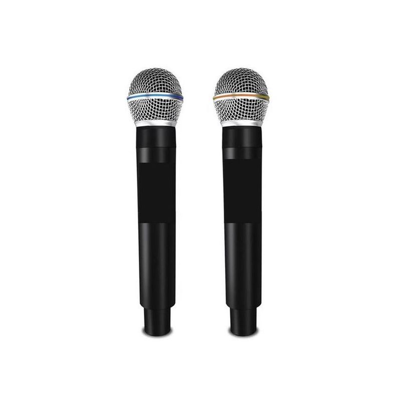 Es hora de que tomes el centro del escenario. Los micrófonos inalámbricos ofrecen el sonido original con una claridad y detalles vocales nítidos. Suene lo mejor posible y toque las notas altas sin distorsión ni retraso. Simplemente conecte el receptor inalámbrico de dos canales a su altavoz, encienda los micrófonos y estará listo para brillar. Baterías AA fáciles de reemplazar, para que pueda tocar cada nota hasta que salga el sol. ¿Tiempo para un dueto? Escuchará ambos micrófonos combinados perfectamente a través de su altavoz. Prepárate para el centro de atención.