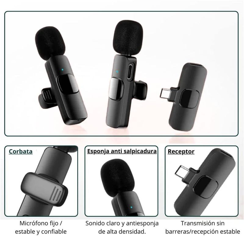 * Estilo: Micrófono Solapero, micrófono para IPhone, micrófono inalámbrico, Mini micrófono portátil