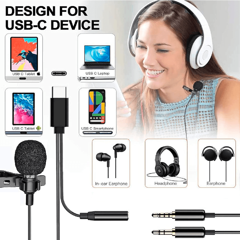 Micrófono Lavalier Solapero Tipo C Supervisión De Audio Celular Laptop