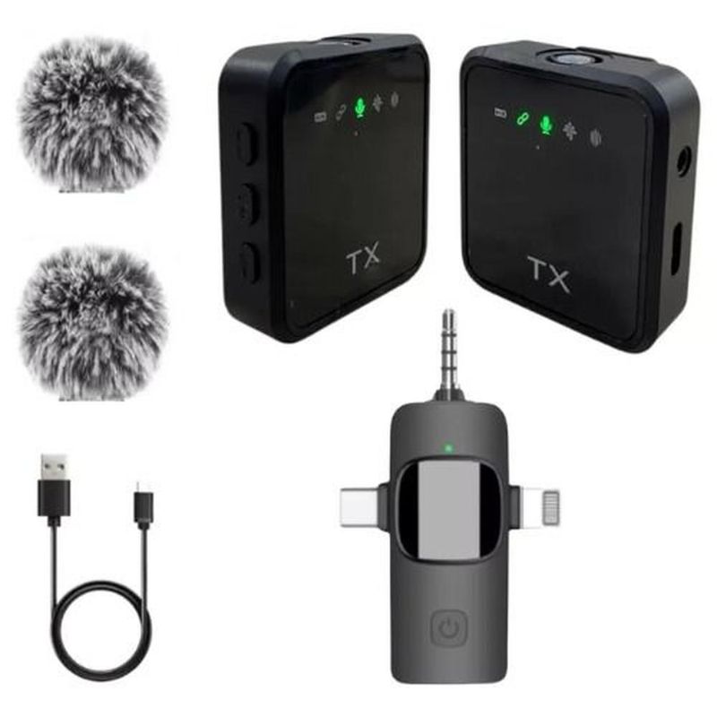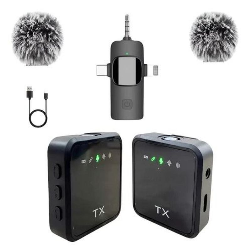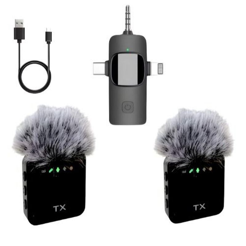 Set de Dos Micrófonos: Ideal para entrevistas, podcasts y grabaciones en dúo, permitiendo la participación simultánea de dos personas.