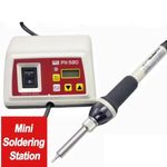 MINI ESTACIÓN DE SOLDADURA SIN PLOMOPX-580 Serie Smart Iron. Miniestación compacta, de alto rendimiento y alta potencia con pantalla digital. ¡Compacto, de alto rendimiento y de alta potencia! Este soldador sin plomo de alto rendimiento ofrece una excelente recuperación de calor.Su miniestación ahorra espacio. Ocupa muy poco espacio.Su unidad compacta, manejable con ambas manos, y su cable flexible facilitan el manejo.La función de suspensión/apagado prolonga considerablemente la vida útil de la punta. Pantalla digital en incrementos de 1 °C Puede confirmar la temperatura configurada rápidamente mediante la pantalla digital.La temperatura se puede ajustar en incrementos de 1 °C, de 200 °C a 500 °C, con las teclas ARRIBA y ABAJO.Lámpara LED de CALOR. Arranque rápido y excelente recuperación de calor El calentador cerámico de alta potencia tarda unos 30 segundos en alcanzar la temperatura establecida de 350 °C (al usar una punta de soldador estándar).Gracias a su calentador y sensor de alta potencia, la fluctuación de temperatura es prácticamente nula durante el funcionamiento continuo a alta potencia.El tiempo de trabajo se ha reducido aproximadamente un 30 % en comparación con el modelo convencional PX-501 (en comparación con nuestra empresa). Funciones inteligentes para una soldadura segura DORMIR Cuando no se utiliza el soldador durante el tiempo preestablecido, la temperatura de la punta se reduce automáticamente para evitar quemaduras.Dormir con frecuencia prolonga considerablemente la vida útil de la punta.Se puede usar con la función de apagado. LIBERACIÓN DE LA FUNCIÓN DE SUEÑO El modo de suspensión se activa rápidamente mediante el sensor de vibración integrado en la empuñadura.En este modo, un ligero toque en el soldador lo activa y lo devuelve a la temperatura de soldadura. CERRAR Cuando la plancha no se utiliza durante el tiempo preestablecido, se apaga automáticamente.La temperatura se muestra a medida que baja.Ahorra electricidad y previene accidentes.*Para volver a usarla, presione cualquier botón o vuelva a encenderla. CERRADURA CON LLAVE Bloqueo con contraseña. No se necesitan herramientas ni tarjetas.Esta función bloquea la configuración de datos introduciendo el código PIN. El personal no autorizado no puede realizar cambios.