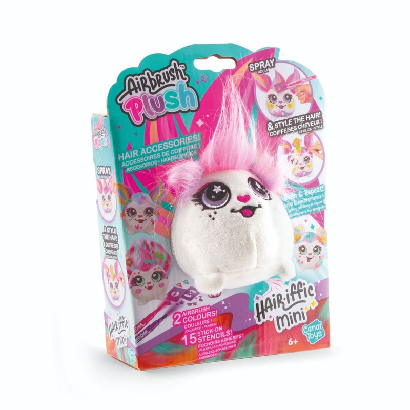 Mini felpa para pintar y peinar con juego de aerógrafo, rotuladores y plantillas - Lavable y reutilizable. Disfruta de lo nuevo en infantil, Mini Peluche Canal Toys Hairiffic Pinkie. Compra Online solo en realplaza.com