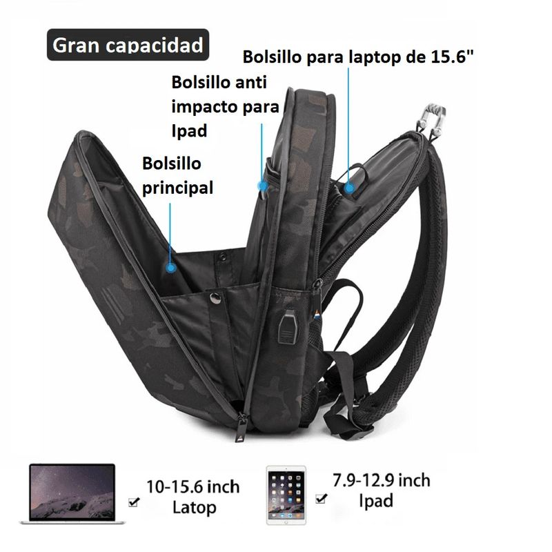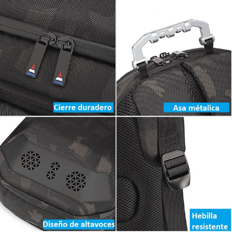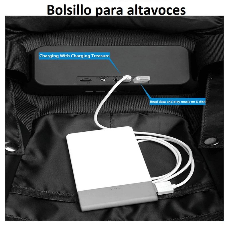 Si eres fanático de la música esta mochila es ideal para ti !!! . El altavoz bluetooth incorporado permite reproducir tus canciones favoritas incluso cuando estás en movimiento, además cuenta con puerto de carga USB. Esta mochila multifuncional tiene diseño de estructura geométrica que la hace resistente y duradera en comparación a otras mochilas. Hecho a base de Oxford y PVC te permite llevar una gran de cantidad de objetos y es ideal para todo tipo de ocasión como viajes, trabajo, universidad y campamentos.