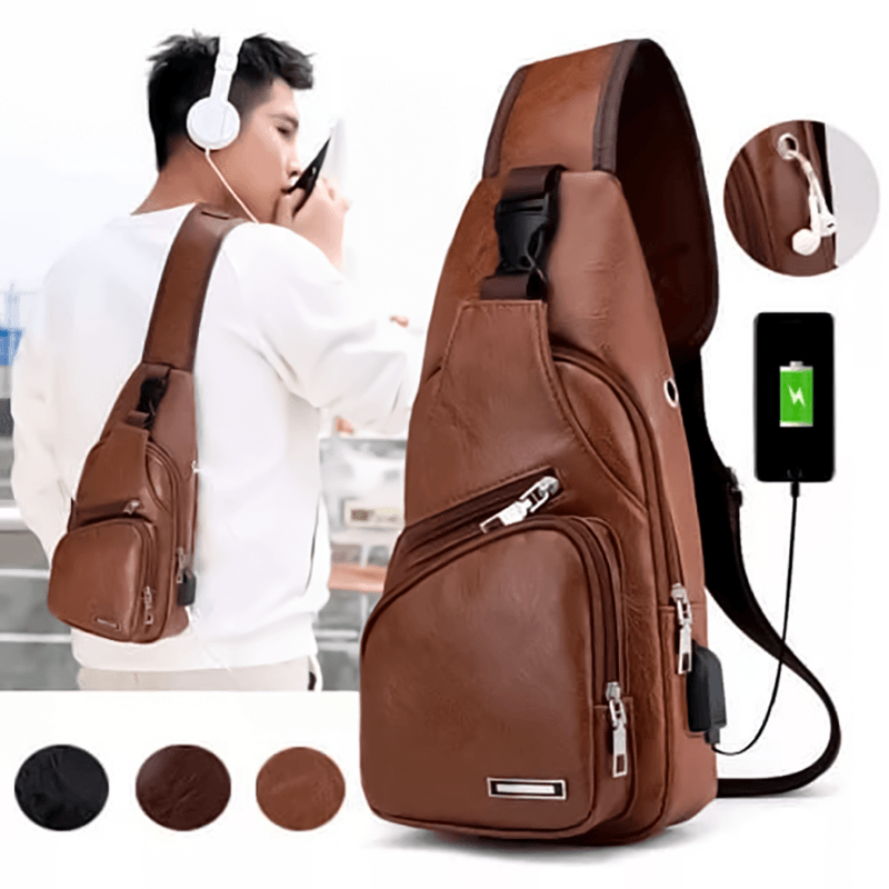 Mochila Pechera Morral Impermeable Con puerto USB Canguro MOD2 color Marron oscuro