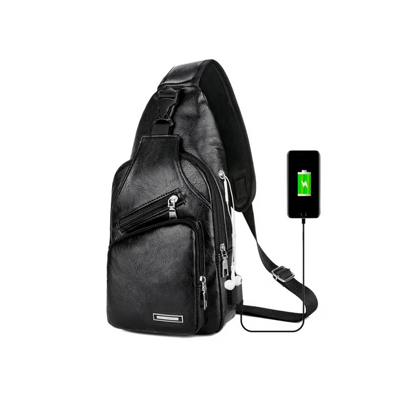 Mochila Pechera Morral Impermeable Con puerto USB Canguro MOD2 color Negro