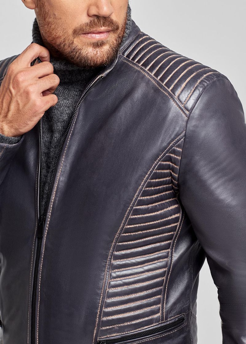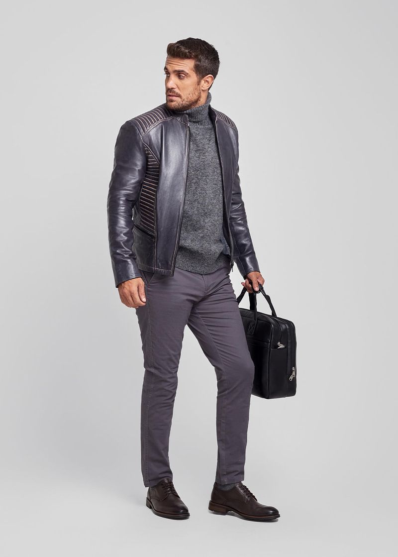 Nuestro modelo de líneas definidas en fino cuero, con acabado desgastado y detalles de acolchado puffer, marcan el camino de un estilo único y audaz. Perfecto para combinarlo con conjuntos básicos de color entero que destaquen su rebeldía.