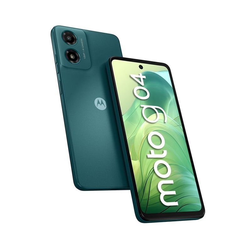 El Motorola Moto G04 es un smartphone Android con una pantalla HD+ de 6.6 pulgadas y potenciado por un chip Unisoc T606 con 4GB de RAM y 128GB de almacenamiento interno. Su cámara principal es de 16MP y la cámara selfie es de 5MP, cuenta con una batería de 5000 mAh, parlantes stereo, lector de huellas, diseño repelente al agua y corre Android 14.