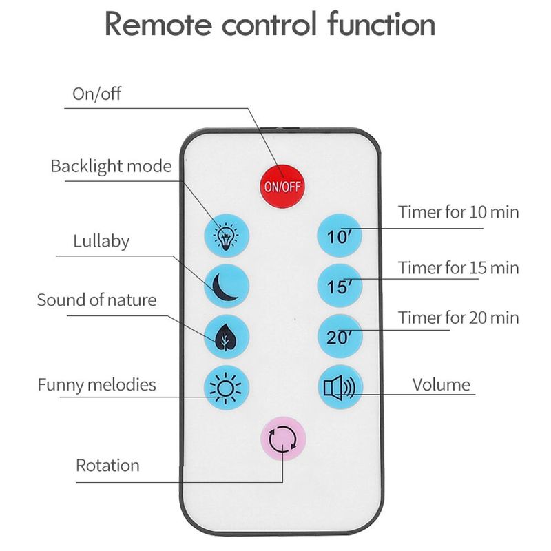 Movil Para Cuna con Proyector Luces y Control Celeste