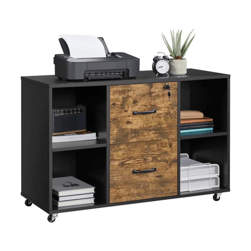 Con materiales seleccionados, una apariencia vintage, 2 cajones espaciosos que permiten archivar en formato Folio o A4 con extensión de cajón 100% y 4 estantes abiertos para almacenar diferentes archivos de papel o libros por separado, este archivador se puede aplicar tanto en el hogar como en la oficina y bien. integre la decoración de su habitación para que sirva como un punto culminante personalista.